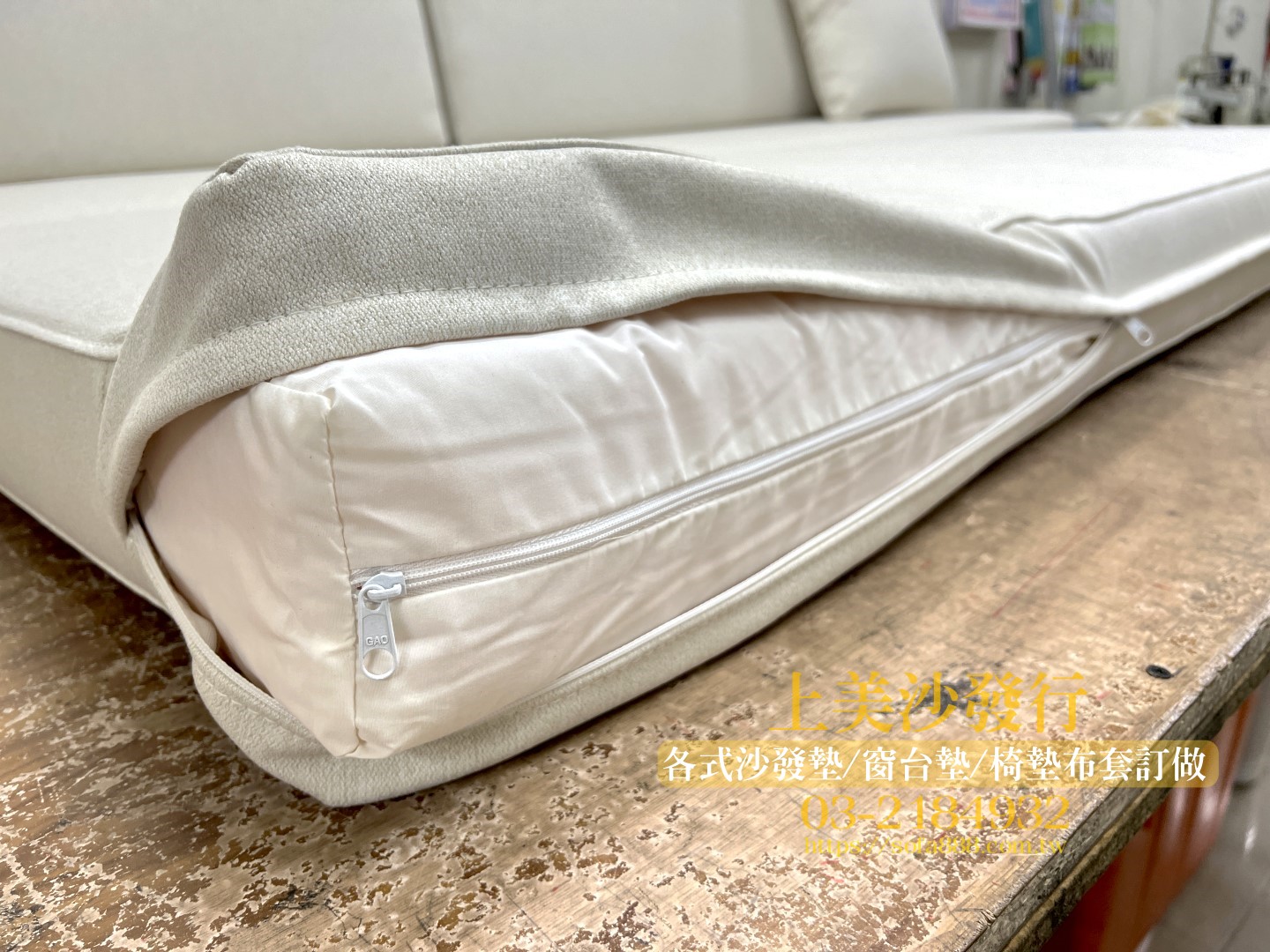 貴妃椅木沙發椅墊訂做|高密度泡棉 × 抗菌防霉耐磨布 × ㄇ字型拉鍊設計,打造舒適與便利的完美組合